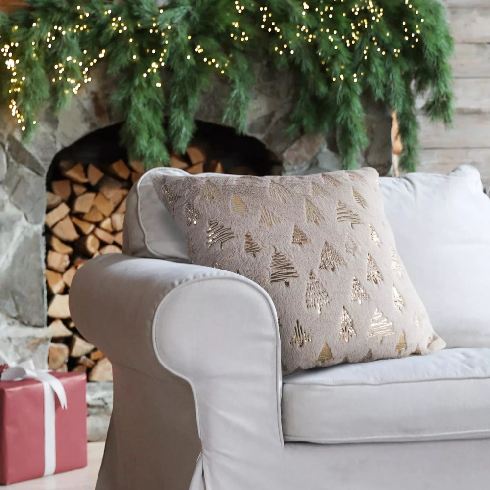 - Štýlová vianočná obliečka na vankúš od Eurofirany so zlatým vianočným stromčekom. Mäkké, príjemné na dotyk a ideálne na vytvorenie slávnostnej atmosféry v obývačke alebo spálni.