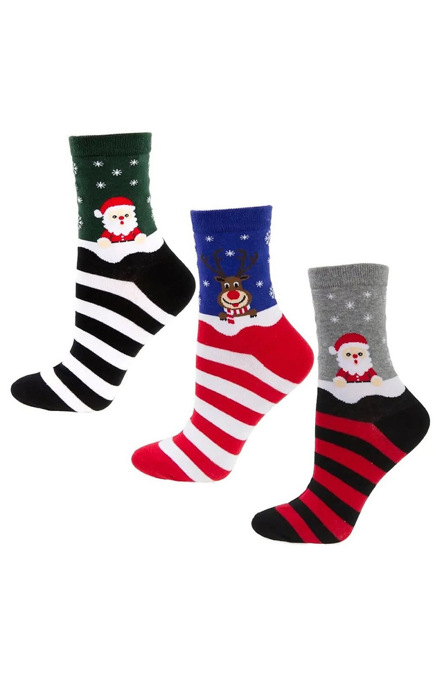Súprava CSLS 450-003/3 by Moraj sú tri páry mäkkých, bavlnených dámskych ponožiek vo veselom, slávnostnom dizajne. Farebné vzory typické pre zimné obdobie prinášajú jedinečnú, veselú náladu a sú ideálnym sezónnym doplnkom.