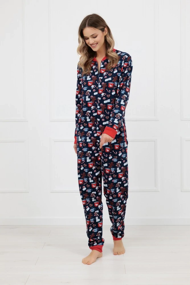 Celá je zdobená roztomilým motívom vianočného pečiva a sobov, ktorý vás okamžite naladí na príjemnú zimnú náladu. Toto je dokonalé pyžamo pre ženy, ktoré ocenia teplo, pohodlie a štýl v kombinácii s nádychom vianočného kúzla.