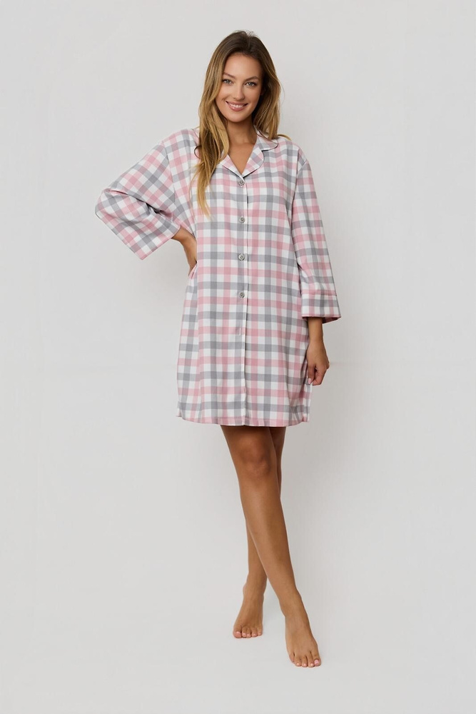 Dámska košeľa Stella KG80 Mefemi by Nipplex pink-grey - elegantná košeľa z kvalitného materiálu, dlhé rukávy, gombíky, bočné rozparky