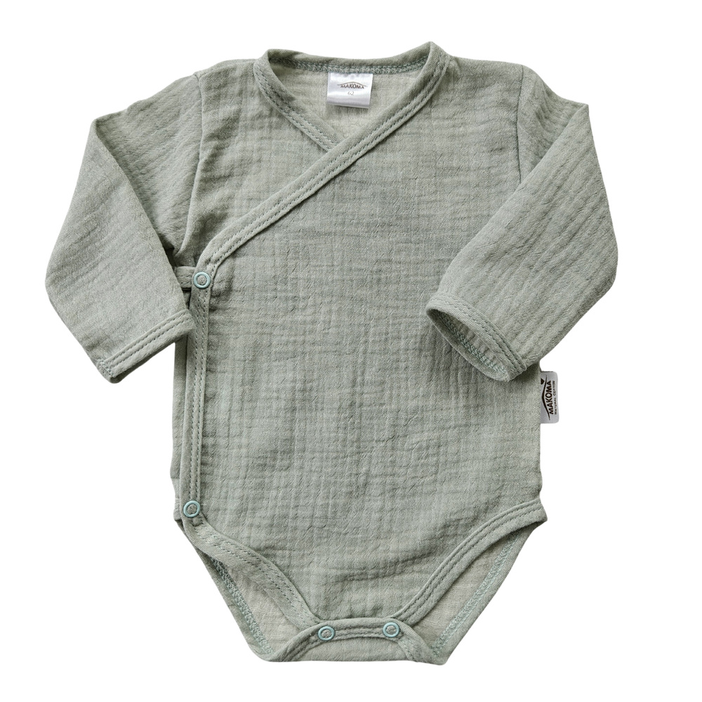 Mušelínové body Just Muslin 03235M Makoma mint - dlhý rukáv, obálkové zapínanie, 100% bavlna