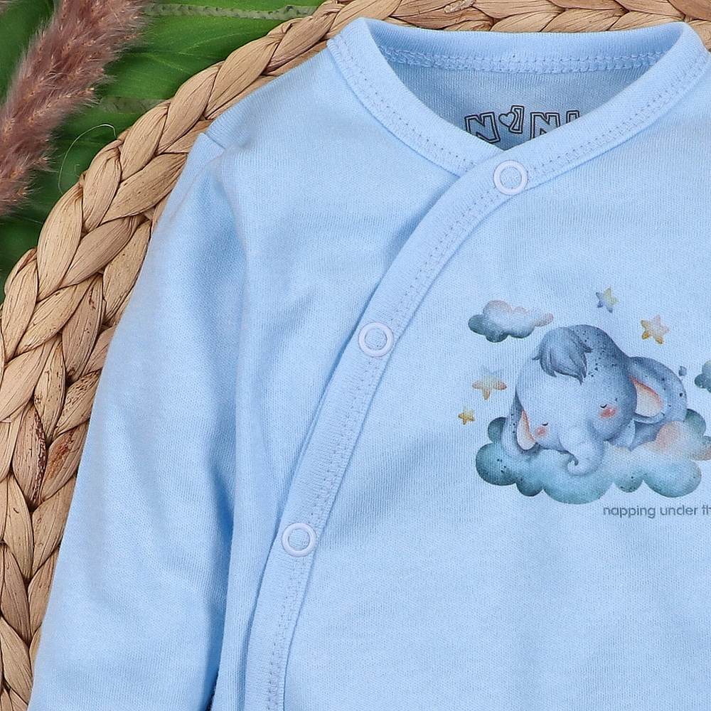 ABN-5603 Nini Little Dreamers obálkové body z organickej bavlny pre dojčatá modré - bezniklové zapínanie, 100% bezpečnosť