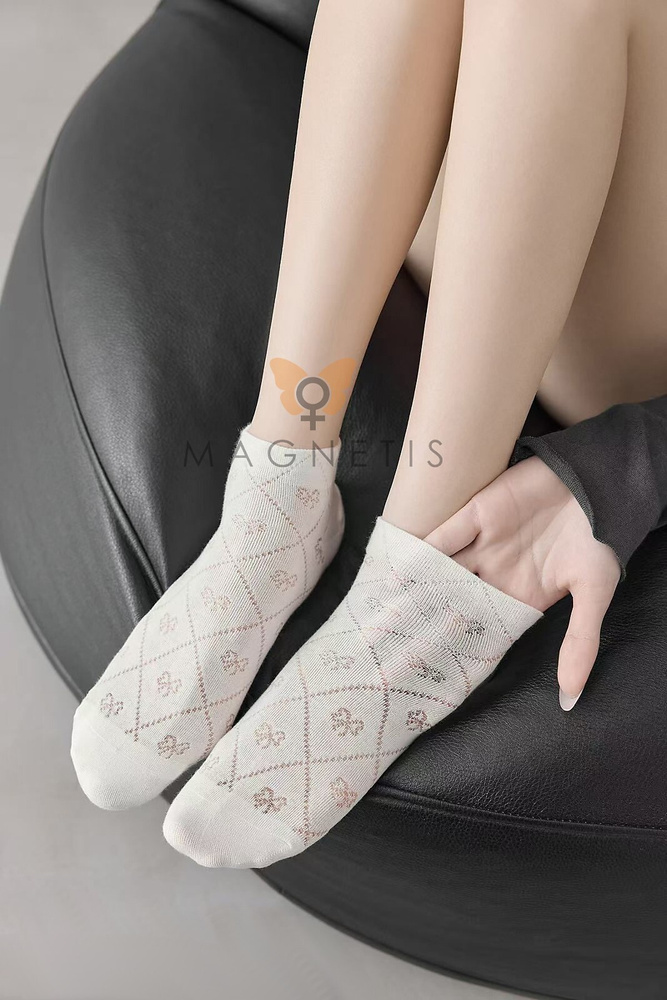 - Pohodlné dámske bavlnené ťapky Magnetis CC-251102 v jemnej farbe ecru s dekoratívnymi vzormi. Mäkké, elastické a príjemné na dotyk, dobre priliehajú k chodidlu. Ideálne do tenisiek, balerín alebo na každodenné nosenie.