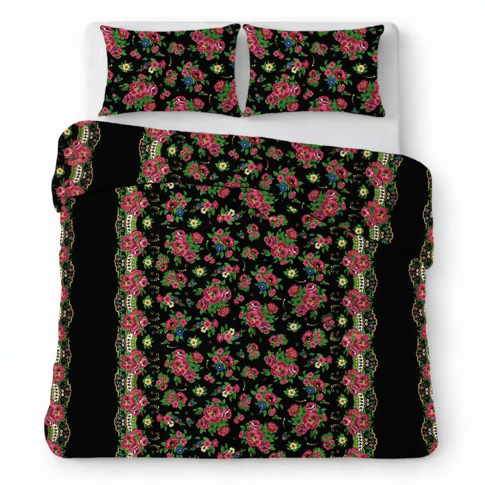 Bavlnené krepové posteľné obliečky komplet priedušné bez žehlenia black with colorful flowers