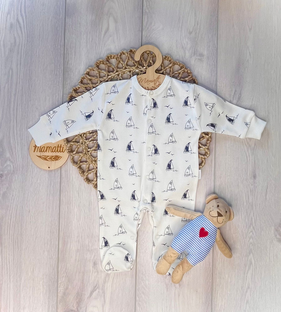 • Mäkký dojčenský overal Mamatti PA16040 s milým motívom lodí. Priedušná bavlna, pohodlný strih a praktické zapínanie zabezpečujú komfort bábätka počas spánku aj počas dňa. Ideálny kúsok do výbavičky pre novorodenca.