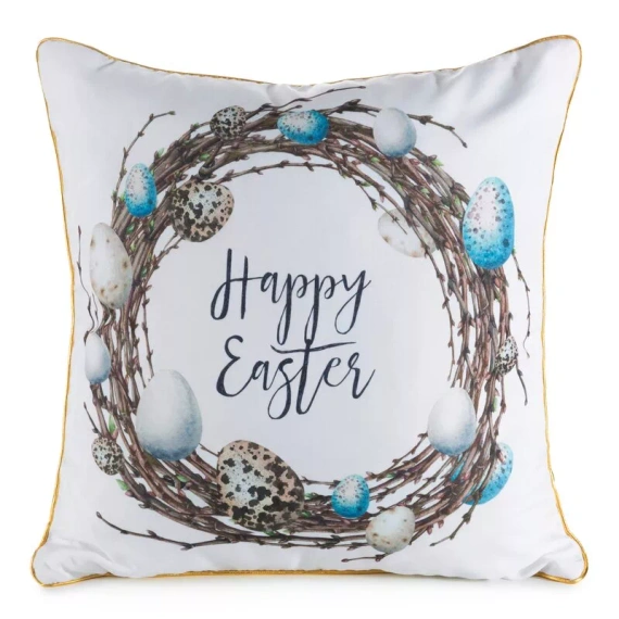 Poťah je vyrobený z príjemného a odolného materiálu, ktorý dobre drží tvar a je vhodný na každodenné používanie. Tkanina je nenáročná na údržbu, čo z neho robí ideálne riešenie nielen ako veľkonočná dekorácia, ale aj ako jarný doplnok na dlhšie obdobie. Veľkonočný motív dodáva priestoru ľahkosť a vytvára príjemnú, útulnú atmosféru.