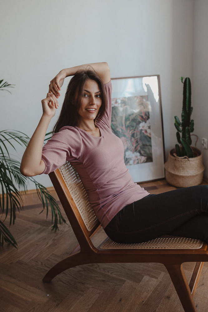 Blúzka je vyrobená z elastického rebrovaného úpletu, ktorý sa prispôsobí meniacim sa krivkám tela a pohodlne pojme rastúce bruško. Vďaka vysokému podielu viskózy je materiál príjemne chladivý na dotyk a zároveň priedušný, čo oceníte najmä počas teplejších dní alebo pri celodennom nosení. Ideálna ako tehotenská blúzka na každý deň – doma, na prechádzke aj vonku.
