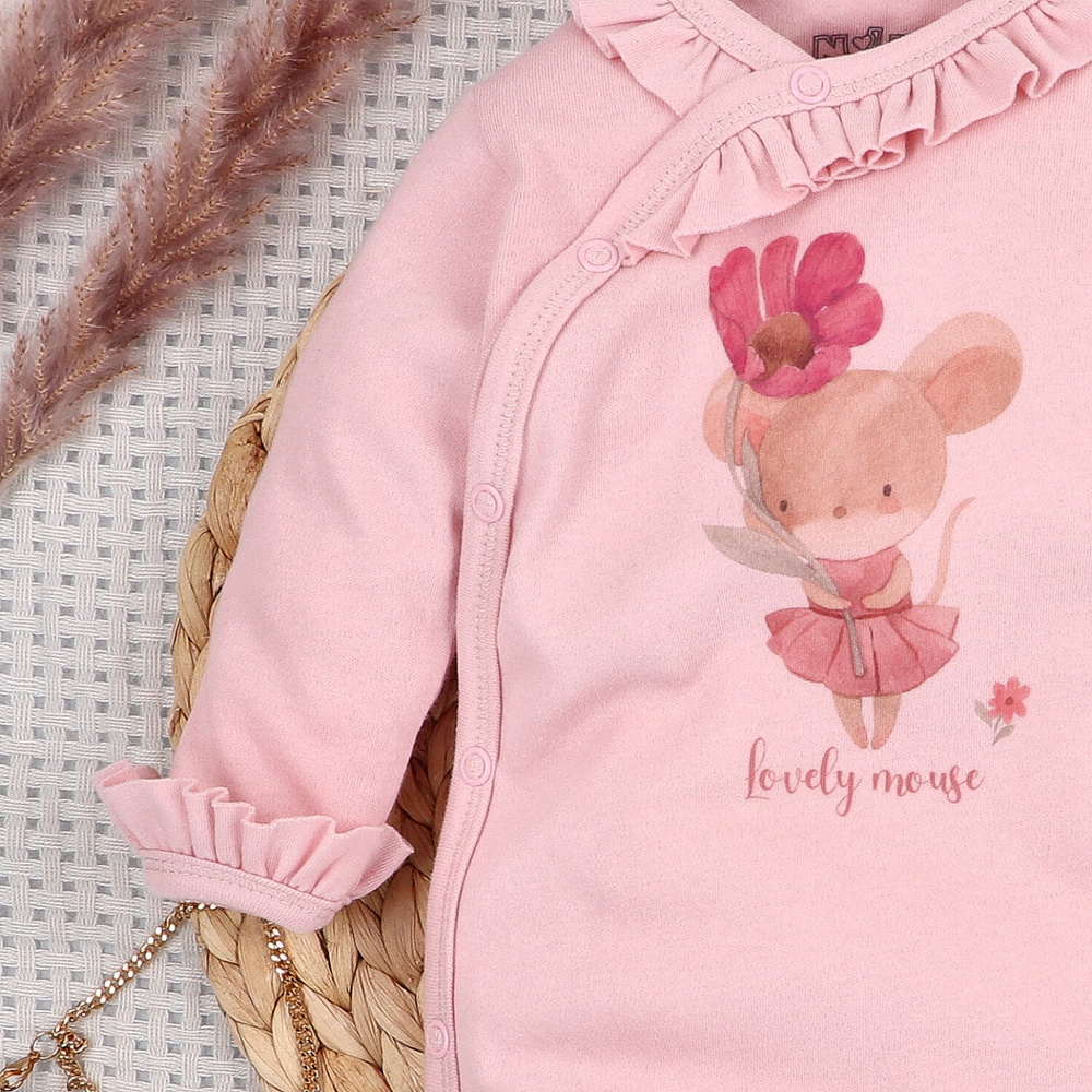 Dojčenský overal Nini Little Mouse 100% bio bavlna pre novorodenca
