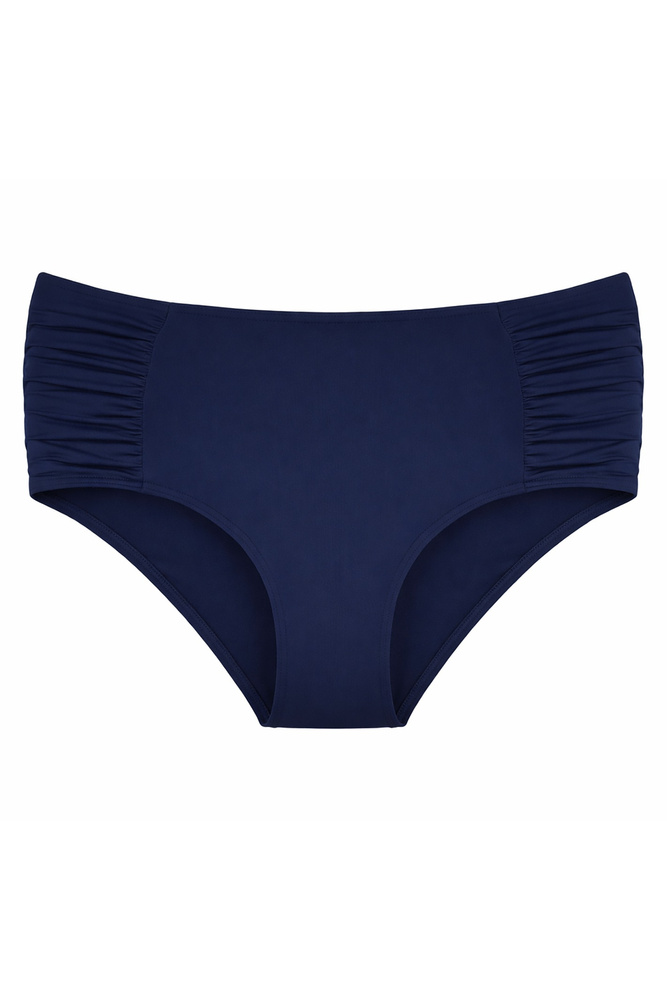 • Plavkové nohavičky s vysokým pásom a riasením na bokoch. Tvarujú postavu, sú pohodlné a elegantné – ideálne na pláž aj do bazéna.