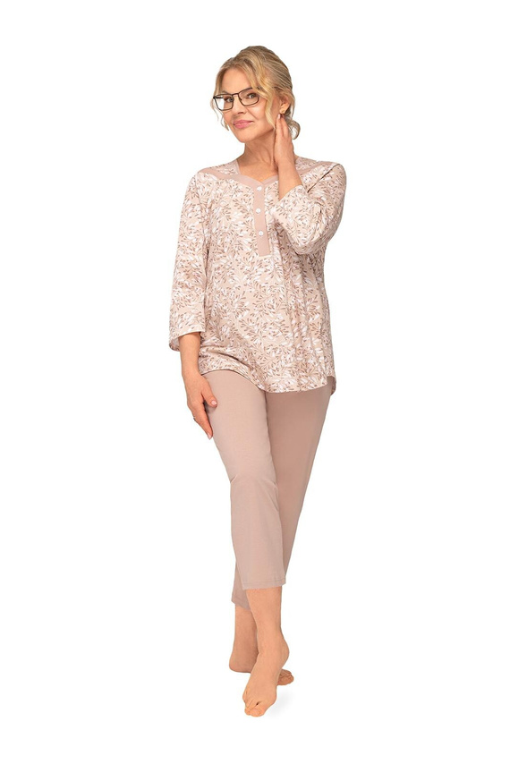 Bavlnené pyžamo Lucyna II 271 Martel listy rukáv 3/4 7/8