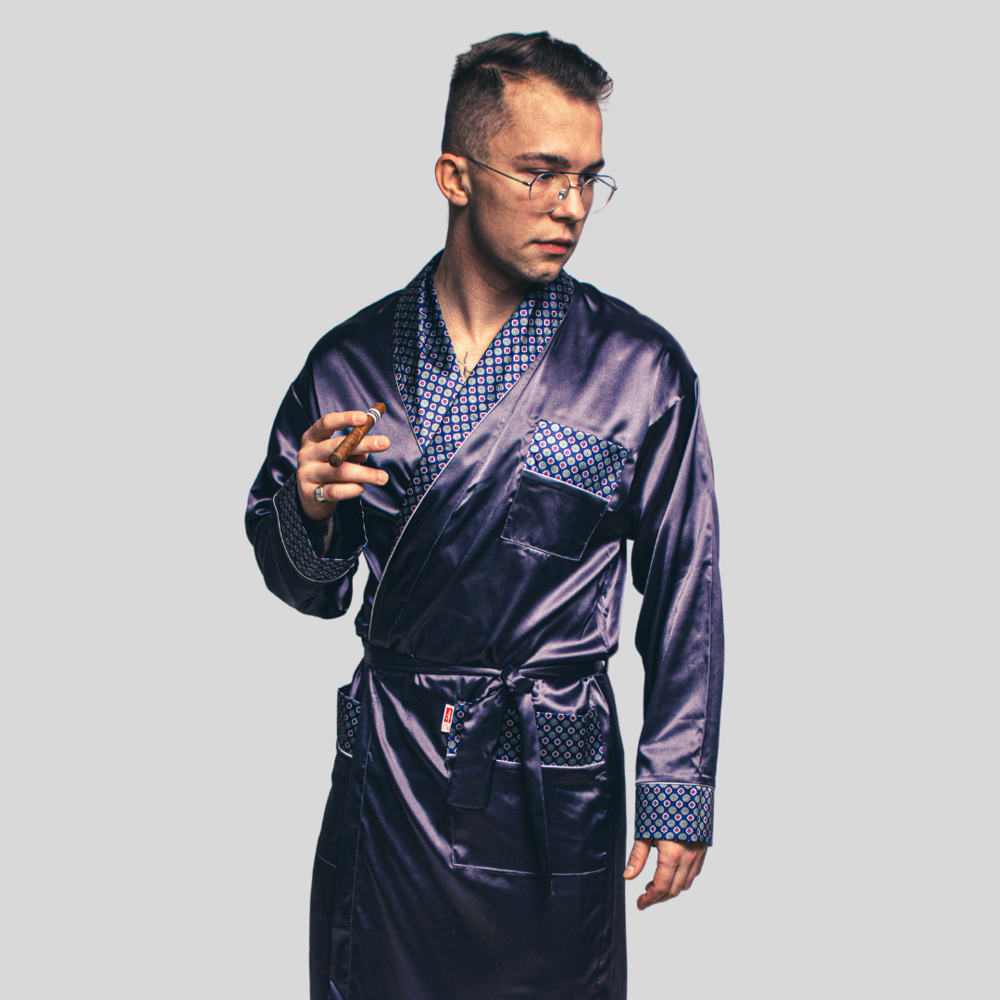 940 Forex pánsky saténový župan - tmavomodrý