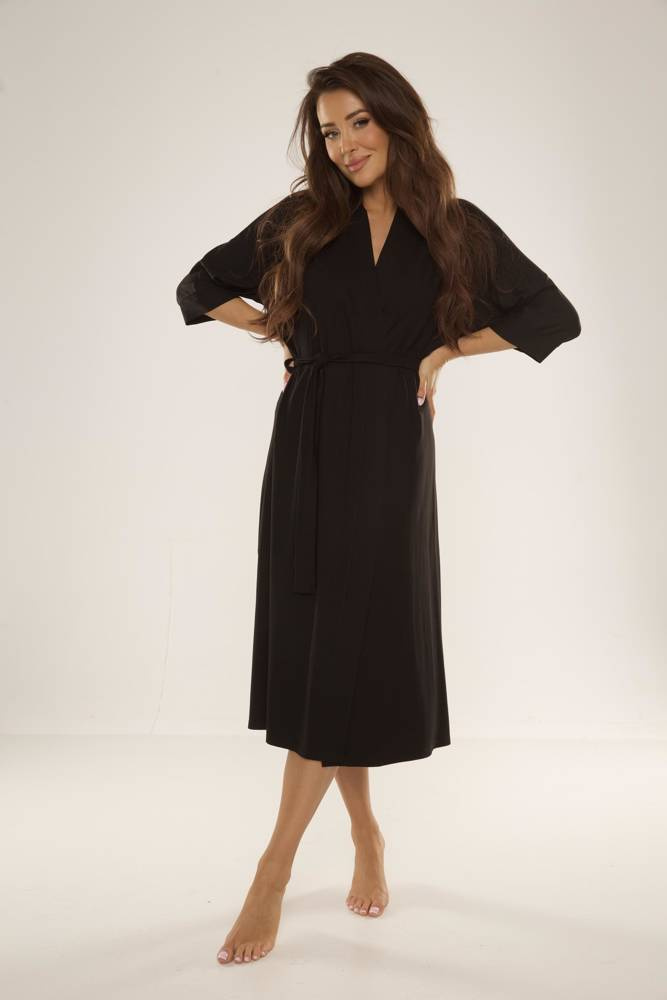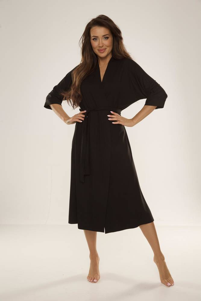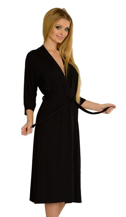 • Elegantný dámsky župan 942 Visa značky De Lafense z vysokokvalitnej viskózy. Dlhý strih, 3/4 rukáv a pás vytvárajú ženský a klasický vzhľad.