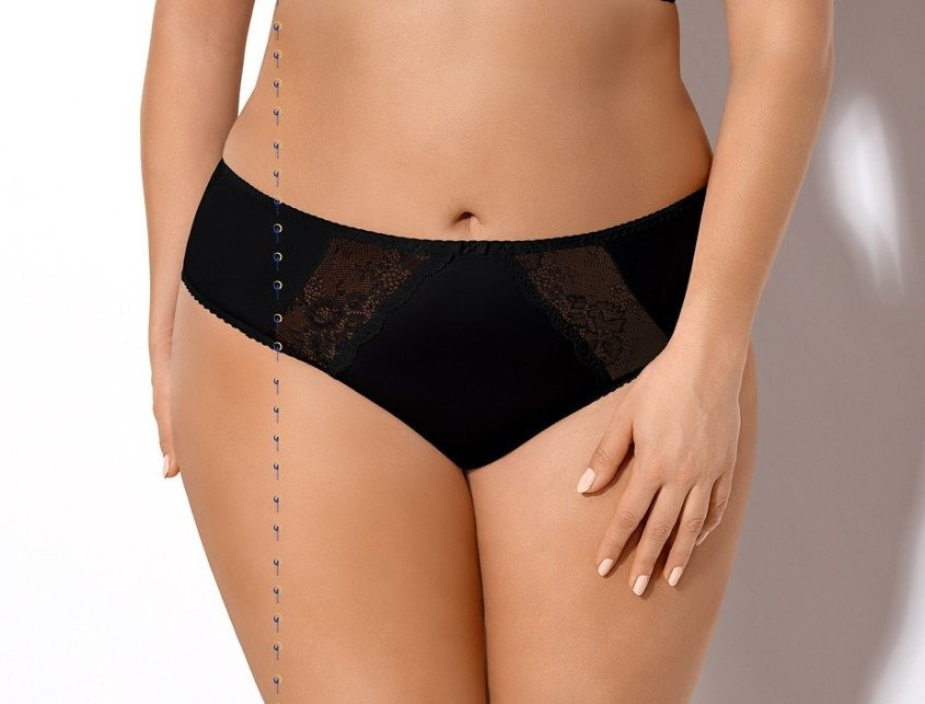 Klasické dámske nohavičky, mierne vystužené na bokoch. Vyrobené z jemného mikrovlákna. Zdobené na prednej strane kvetinovými čipkovanými vložkami.