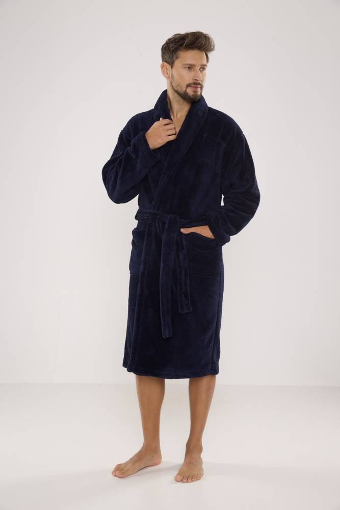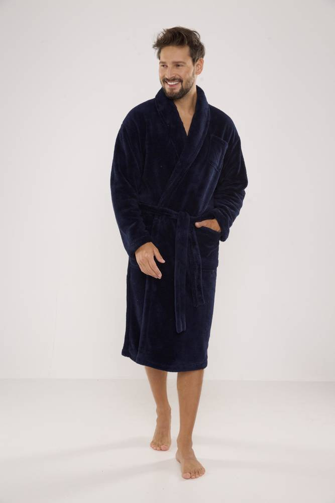 811 Pánsky plyšový župan De Lafense - tmavomodrý