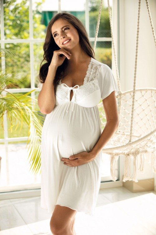 3012 Nočná košeľa pre tehotné a dojčiace ženy Lupoline ecru