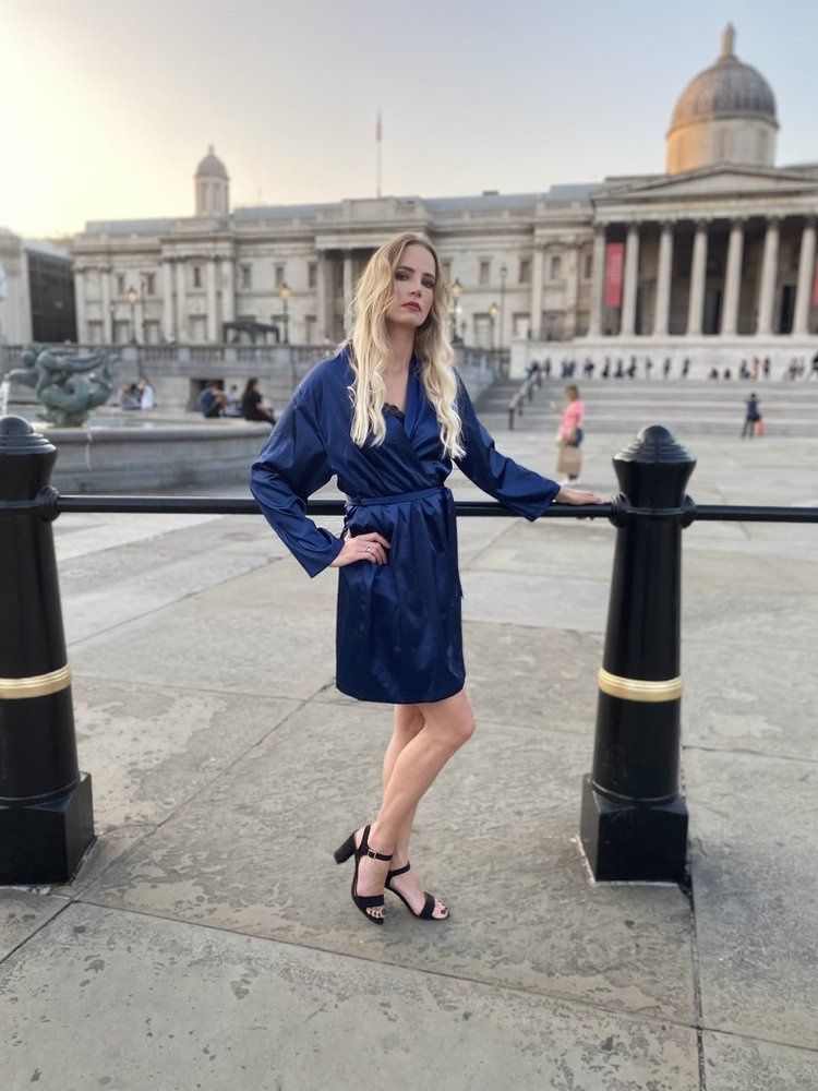 Jednoduchý, krátky saténový župan zaujme svojou eleganciou a takmer všestranným použitím.