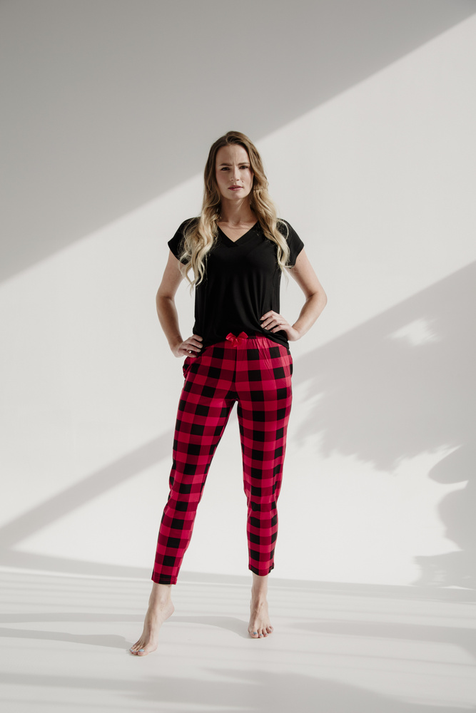 Pohodlné dámske nohavice na spanie z kvalitnej viskózy v károvanej farbe.