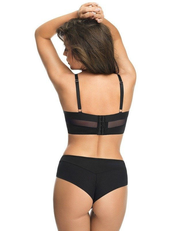 Fenomenálna push-up podprsenka push-up s kosticami, z lesklej tkaniny, v hornej línii jemná tylová sieťovina podšitá béžovou tkaninou. Má nastaviteľné, neodnímateľné ramenné popruhy. . Stabilný obvod, s bočnou veľrybou kosťou. Široký chrbát so zapínaním na 6 háčikov a očiek s trojstupňovou úpravou lemu.