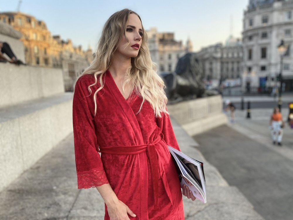 Dámsky župan z kvalitného bambusového velúru. Krátke, viazané v páse, 3/4 rukávy. Manžety sú zdobené výraznou kvetinovou čipkou. Župan sa dokonale prispôsobí tvaru tela, je mimoriadne mäkký a ľahký. Zabaliť sa do nej po kúpaní je pôžitok!