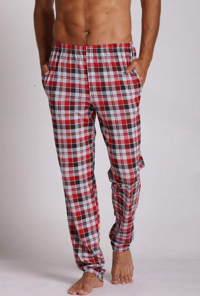 Pohodlné pánske nohavice na spanie s vreckami. Vyrobené z vysoko kvalitnej, mimoriadne príjemnej a mäkkej bavlny. Dlhé nohavice, elastický pás zdobený viskózou .