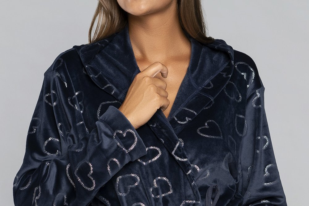 Dámsky župan Elixir splní všetky tieto očakávania. Už len samotný dotyk spôsobuje, že sa do nej chcete ponoriť. Vyrobené z neuveriteľne mäkkého a jemného úpletu Bi fleece v klasickom tmavomodrom a krásnom šťavnato červenom odtieni, zdobené striebornými trblietavými srdiečkami.