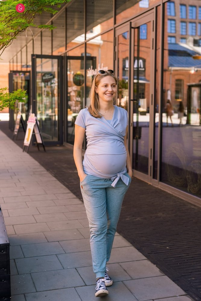 Spodnie z dzianiny w takim kolorze, żeby idealnie pasowały bluz ciążowych i do karmienia Milk Please. Kupując komplet - bluzę i spodnie, masz dresy ciążowe i później dresy do karmienia piersią w jednym!