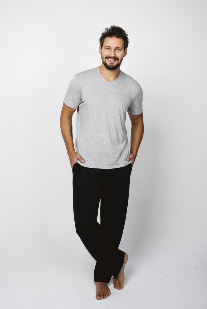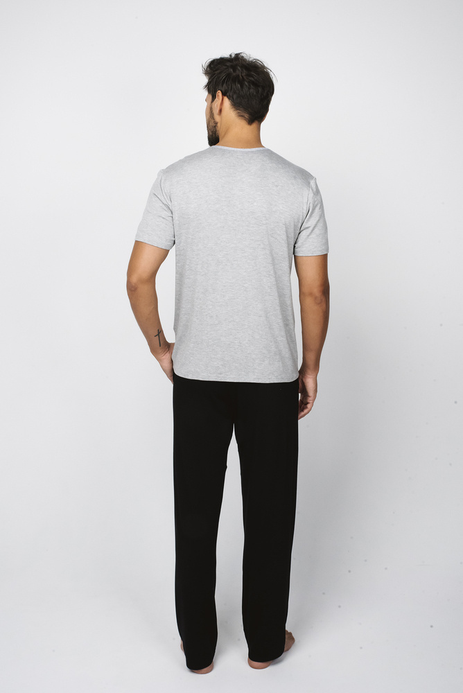 Dallas Pánske pyžamo s krátkym rukávom, dlhé nohavice Italian Fashion- melange/black