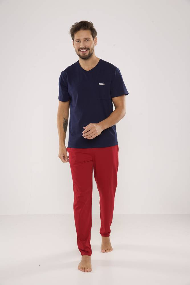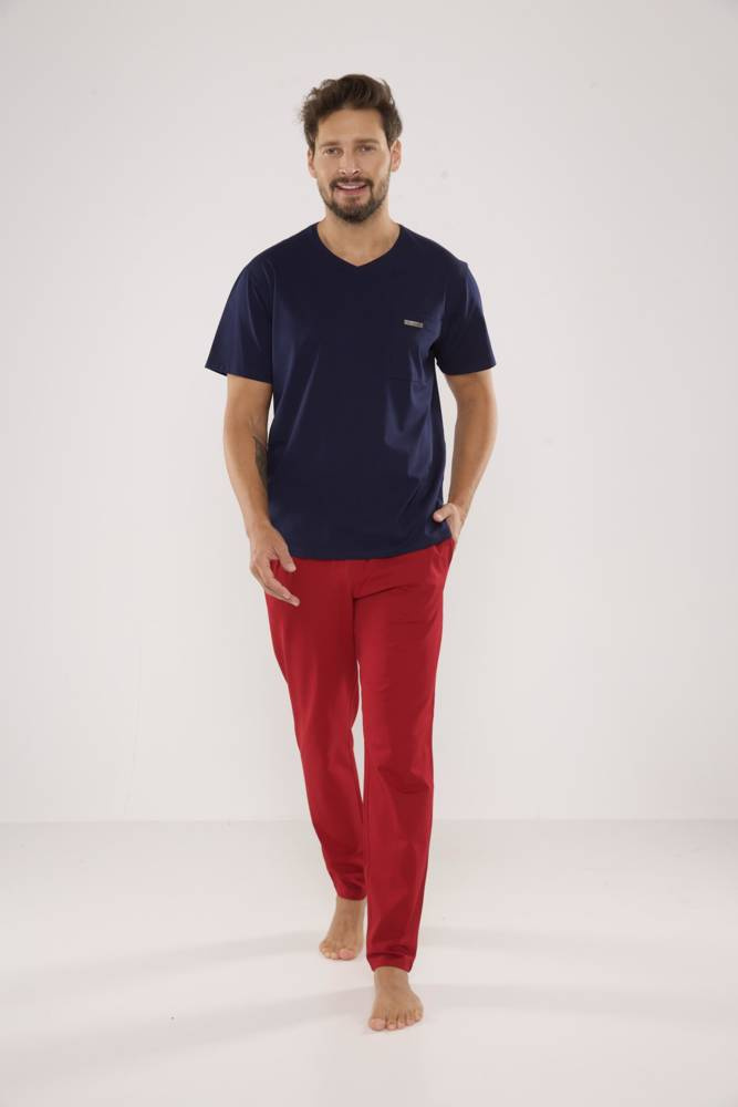 624 Kevin Forex Pánske pyžamo - námornícka modrá-bordeaux