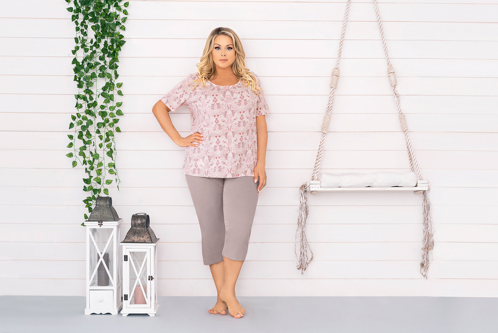 Dámske pyžamo Kalmia je veľmi pohodlný model, ktorý vďaka svojmu voľnému strihu krásne padne na každú postavu a zakryje nedokonalosti. Výstrih je zakončený pôvabnou saténovou mašľou, ktorá krásne ladí s kvetinovou potlačou. Vyrobené zo 100 % MÄKKÉHO BAVLNA, ktorý je vďaka mimoriadne dlhým prírodným vláknam mimoriadne mäkký, jemný, hodvábny a príjemný na dotyk.