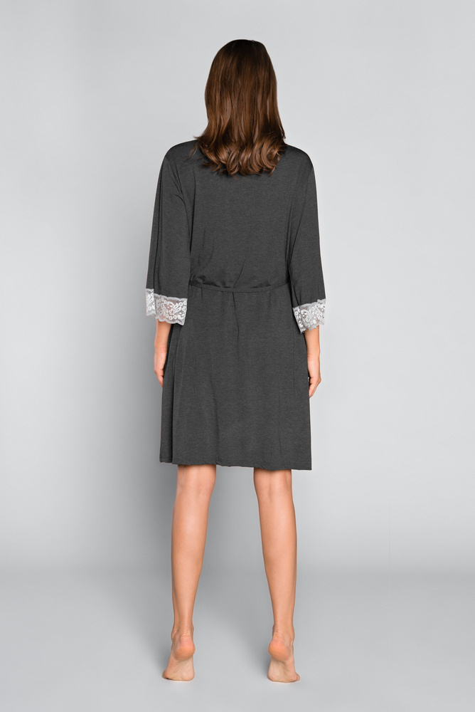 Dámsky župan Sonata je kombináciou zmyselnosti, šarmu a elegancie. Model je vyrobený z jemnej prírodnej viskózy a zakončený sofistikovanou čipkou, čo je kombinácia, ktorá dokonale zvýrazní ženskú krásu. S košeľou alebo pyžamom Sonata si môžete vytvoriť jedinečný set pre seba alebo ako darček.