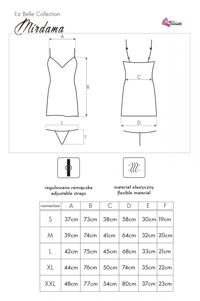 • Nočná košeľa úzke ramienka vrátane tangáčov Zloženie: zloženie: 95% polyester, 5% elastan
