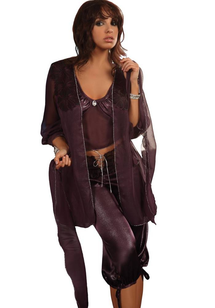 • Dámska súprava Župan, košieľka a nohavice tričko bez ramienok a nohavice 100% polyester