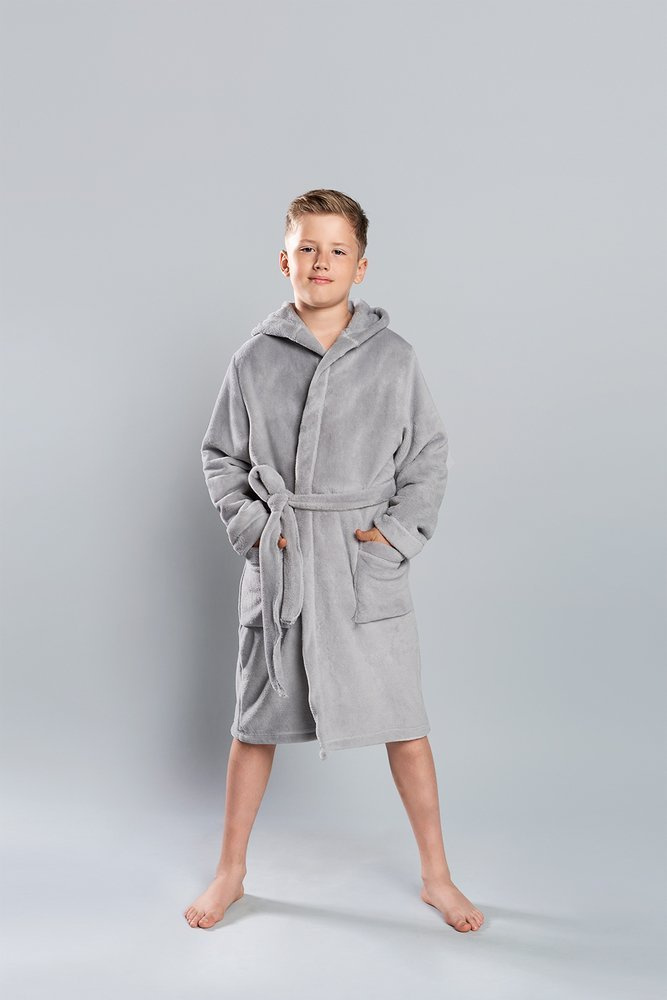 • Pánsky župan,vrecká, kapucňa.Viazané v páse.Poľský výrobca 100% polyester Chlapčenský župan Mimas je možné zakúpiť do súpravy.
