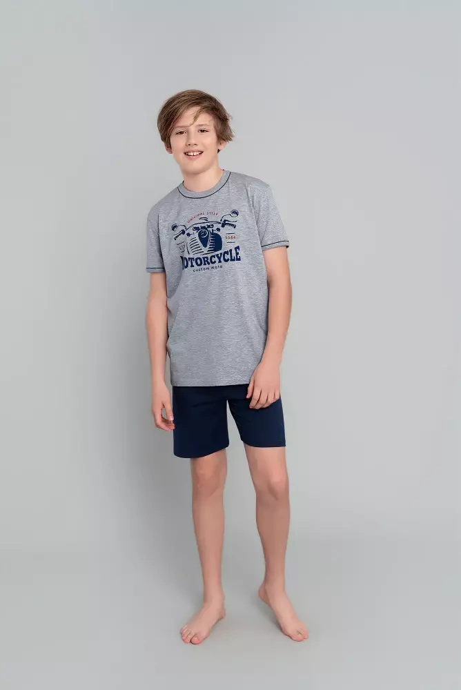 Gibson Chlapčenské pyžamo s krátkym rukávom, nohavice Italian Fashion - melange