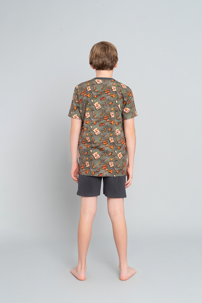 Westernové chlapčenské pyžamo s krátkym rukávom, nohavice Italian Fashion - olivová/grafitová