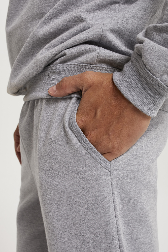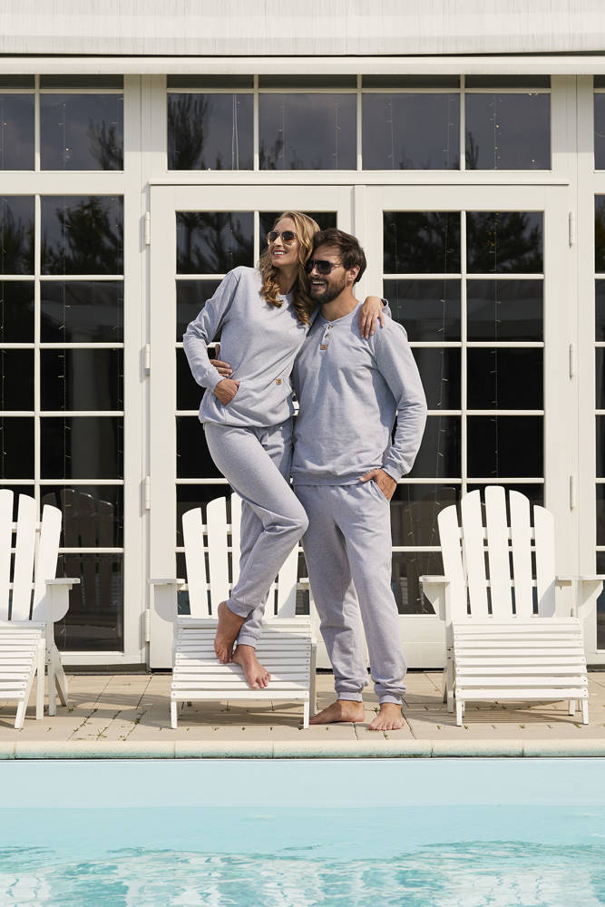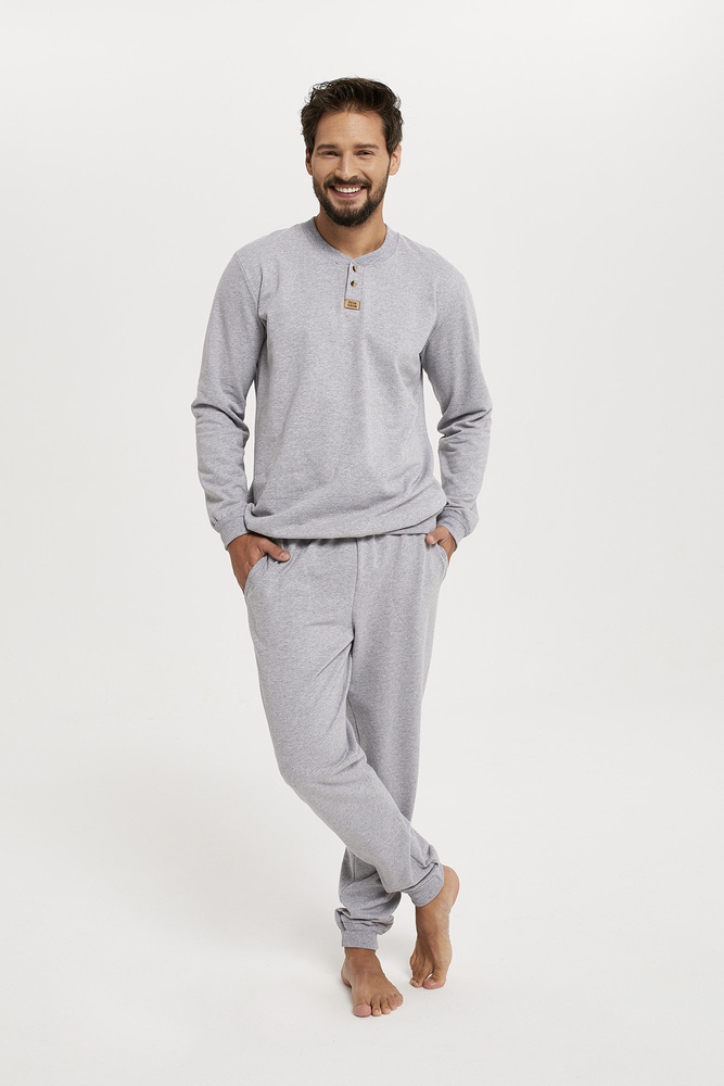 Pánska súprava Lider bola ušitá z pletenej teplákovej súpravy melanžovej farby. Je ideálnou voľbou na jesennú/zimnú sezónu vďaka použitiu hrubej, na dotyk príjemnej teplákovej látky. Pánske tepláky Lider sa ľahko pohybujú, sú priedušné a šetrné k pokožke.