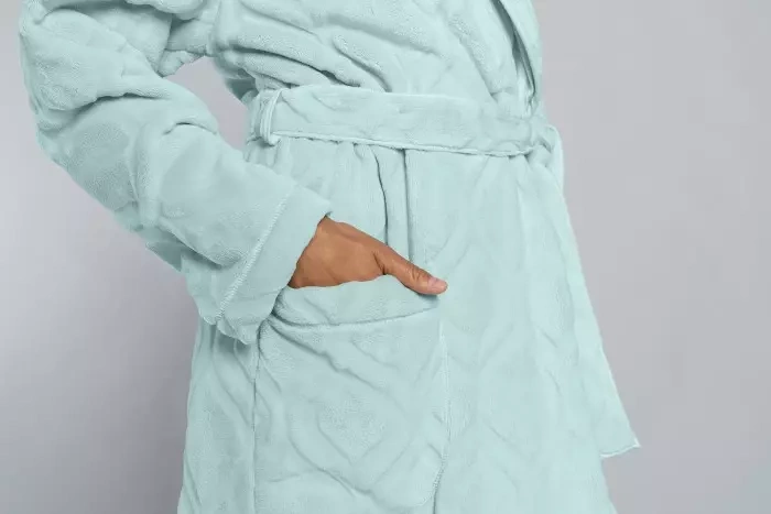 Халат жіночий MORENA vід TALIANSKA MÓDA - ідеальний вибір для тих, хто цінує максимальний комфорт і тепло. Виготовлений зі 100 % поліестеру tiпу bifleece, vін відрізняється винятковою м'якістю та легкістю. Пухнаста флісова тканина приємна до тіла та забезпечує відчуття затишку з перших секунд дотику.