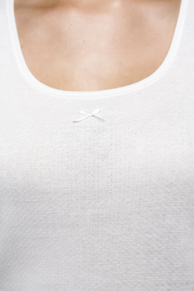 Klasická košieľka Debi so saténovou mašľou je ideálnou voľbou pre tých, ktorí ocenia vysokú kvalitu spracovania. Pri výbere tohto odevu je najdôležitejšia príjemná a priedušná tkanina, preto bolo tričko Debi vyrobené z čistej bavlny. Antialergická a na dotyk jemná tkanina a široké ramienka zvýšia vaše pohodlie a bielizeň bude nepostrehnuteľná aj počas intenzívneho cvičenia. Zameriavame sa na vaše pohodlie, takže si môžete byť istí, že vaša pokožka bude dokonale chránená pred chladom a drsnou štruktúrou vrchného odevu. Jemné zdobenie v podobe saténovej mašle dodáva košieľke elegantný a sofistikovaný nádych. Tento jemný doplnok znamená, že tričko bude vyzerať rovnako dobre ako exponovaná časť stylingu.