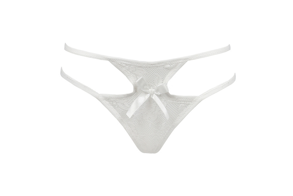 Sexi tangá z priehľadnej čipky. Ozdobná mašľa v strede.