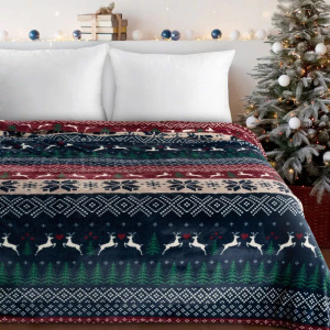 Eurofirany Vianočná deka tmavomodrá červená so škandinávskym vzorom - mäkký prehoz z mikrovlákna, 240 g/m²