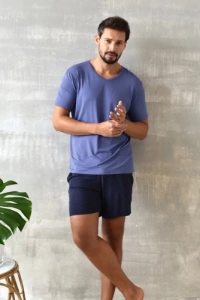 Stefano Pánske pyžamo s krátkym rukávom, šortky Talianska móda - námornícka/tmavý melír