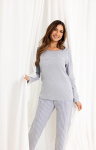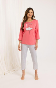 318 Dámske pyžamo Luna pink - bavlna, dlhý rukáv, kvetované nohavice, pohodlie a štýl