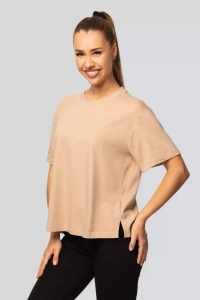 Dámske bavlnené tričko Urban beige - krátky rukáv, klasický strih, módne s rozparky | Kvalitný materiál, elastický