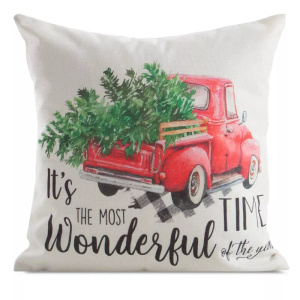 Chp 226 Eurofirany Vianočná obliečka na vankúš - bielo-červená s autom a vianočným stromčekom, dekoratívna